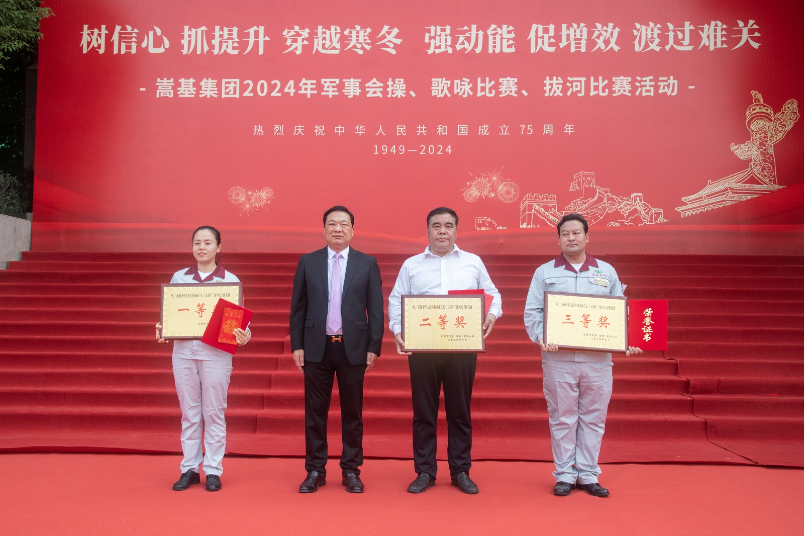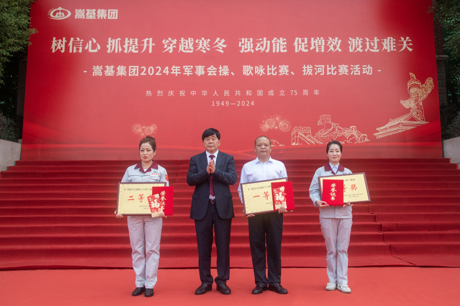 活動(dòng)正式開(kāi)始前,集團(tuán)公司董事長(zhǎng)屈松記發(fā)表致辭。他講到,2024年世界經(jīng)濟(jì)復(fù)雜性、不確定性上升,國(guó)內(nèi)周期性、結(jié)構(gòu)性矛盾突出,各種因素困擾著企業(yè)的生存與發(fā)展。集團(tuán)公司高管團(tuán)隊(duì)審時(shí)度勢(shì),研判經(jīng)濟(jì)發(fā)展動(dòng)態(tài),及時(shí)做出戰(zhàn)略性判斷和戰(zhàn)術(shù)調(diào)整,集團(tuán)上下同欲,全面貫徹落實(shí)“一挖、兩抓、三提、四降、五減、六?!贝胧┓桨?,全面推進(jìn)“三穩(wěn)四?!惫ぷ?,全面推行“鎖定利潤(rùn),倒推成本”的嵩基版AMB管理模式,全面抓好精益管理、持續(xù)改善,深入開(kāi)展效能提升年活動(dòng),取得了一定的成效,實(shí)現(xiàn)了企業(yè)穩(wěn)定持續(xù)發(fā)展。他還對(duì)參賽單位和隊(duì)員提出了希望和祝福。隨后,主持人宣布“慶祝中華人民共和國(guó)成立75周年”軍事會(huì)操、歌詠比賽、拔河比賽系列文體活動(dòng)開(kāi)始。