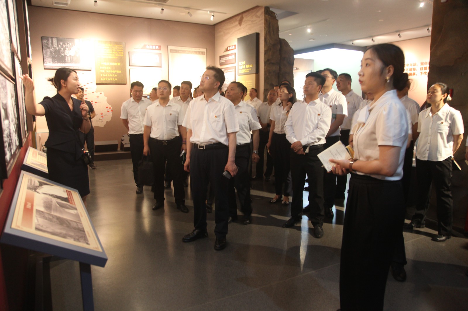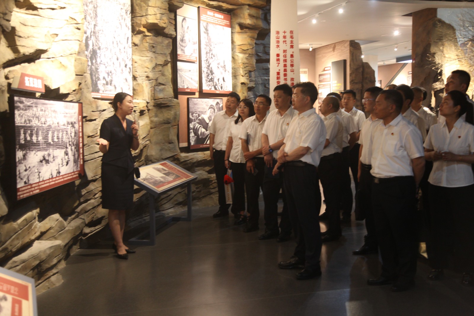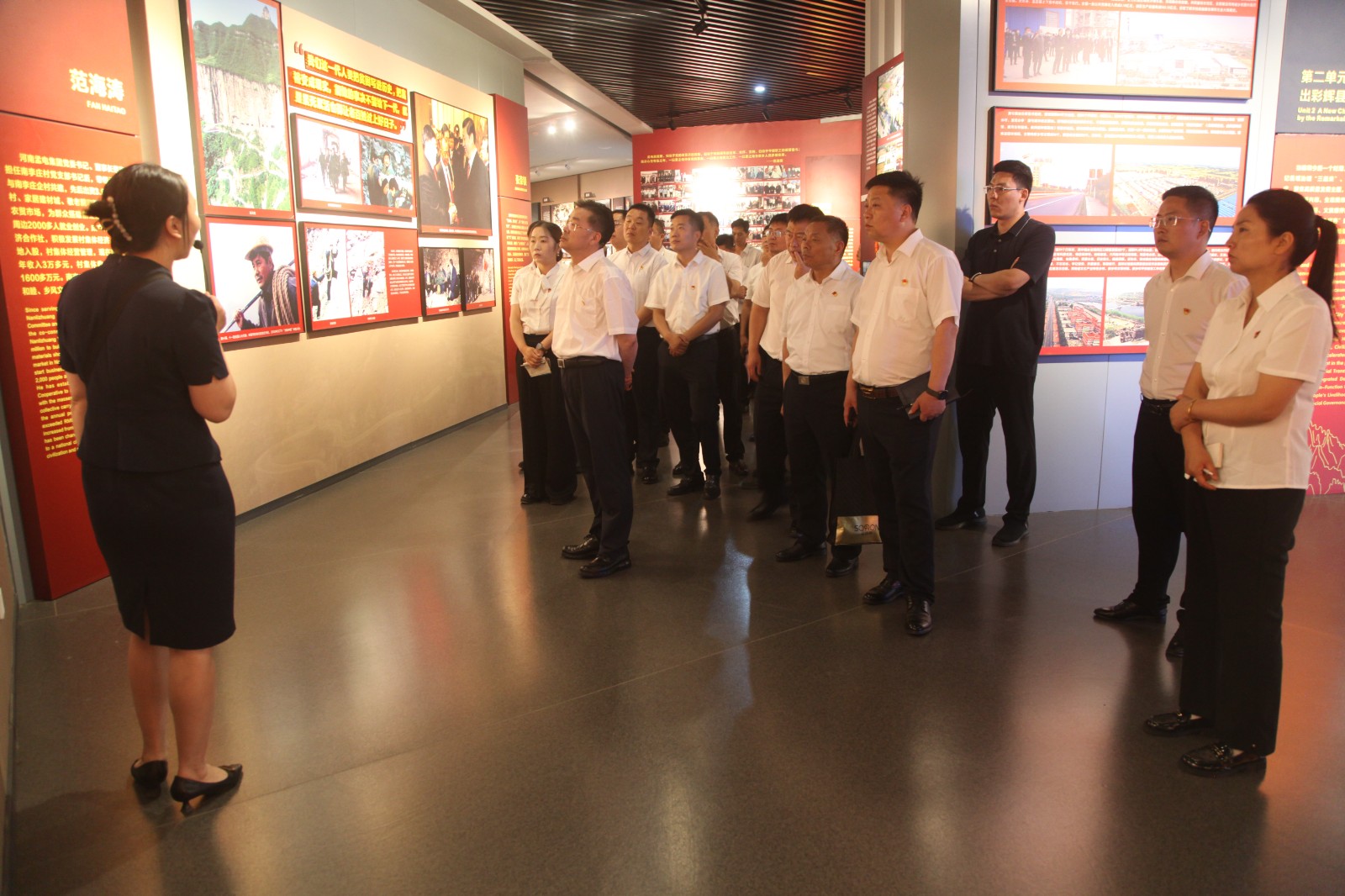 隨后,黨員代表一行來(lái)到輝縣人民干得好展覽館參觀。該館以“不忘初心,牢記使命”為主題,通過生動(dòng)的青銅浮雕、珍貴的歷史圖片和詳實(shí)的文字記載,全方位、立體化地再現(xiàn)了輝縣人民自力更生、艱苦奮斗、戰(zhàn)天斗地的輝煌歷程和偉大成就。深刻感人的“輝縣精神”給全體參觀人員帶來(lái)了強(qiáng)烈的思想震撼和精神洗禮,進(jìn)一步堅(jiān)定了大家傳承紅色基因、賡續(xù)奮斗血脈、立足崗位建功立業(yè)的信念。