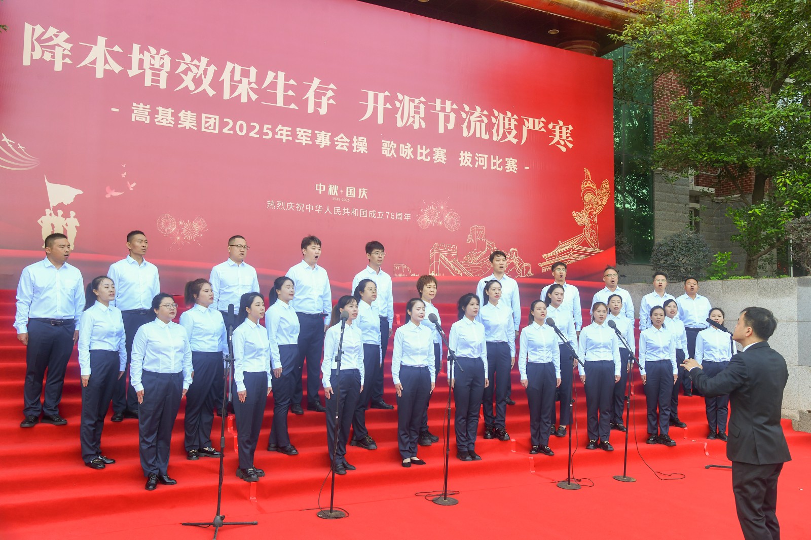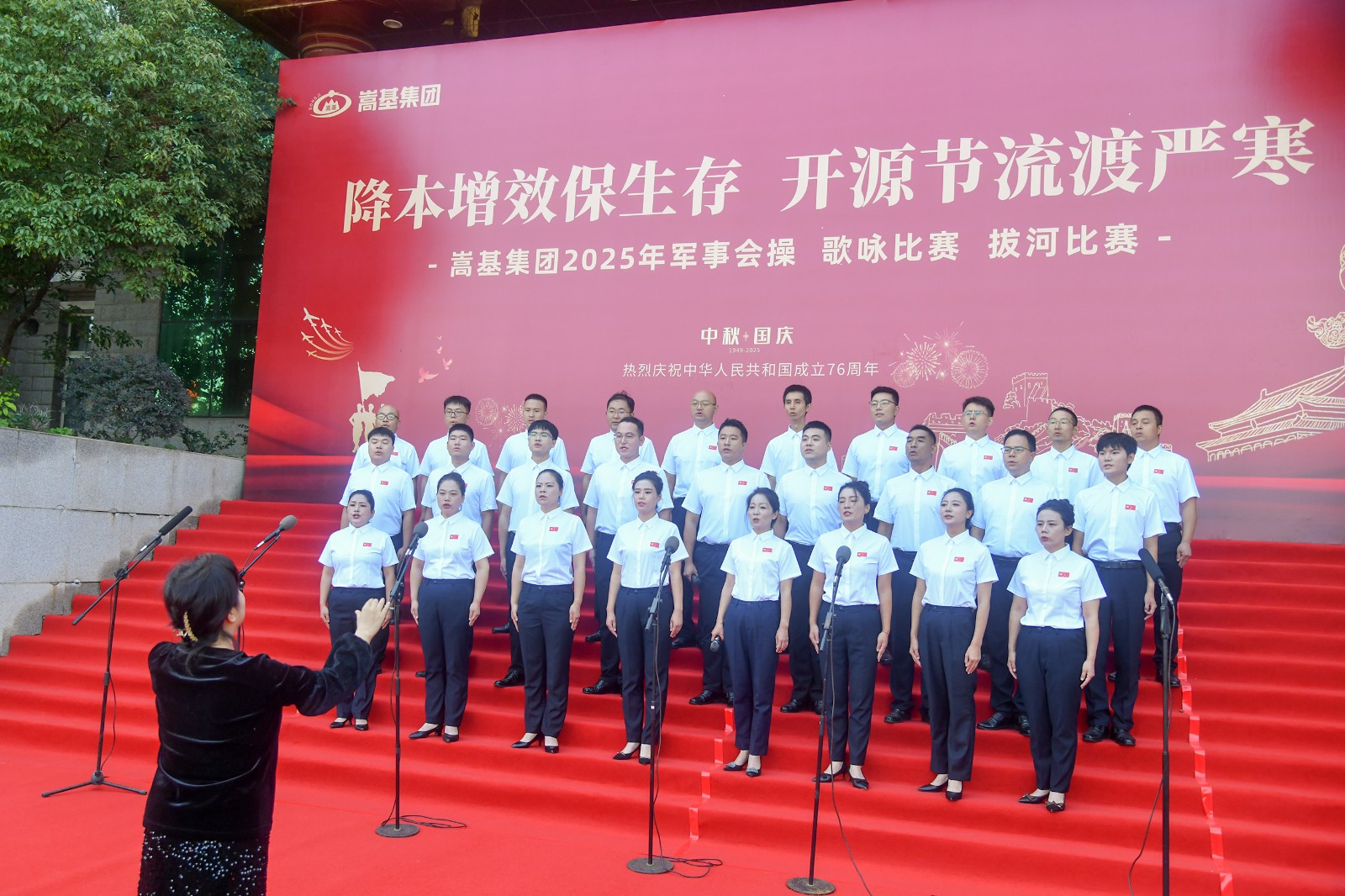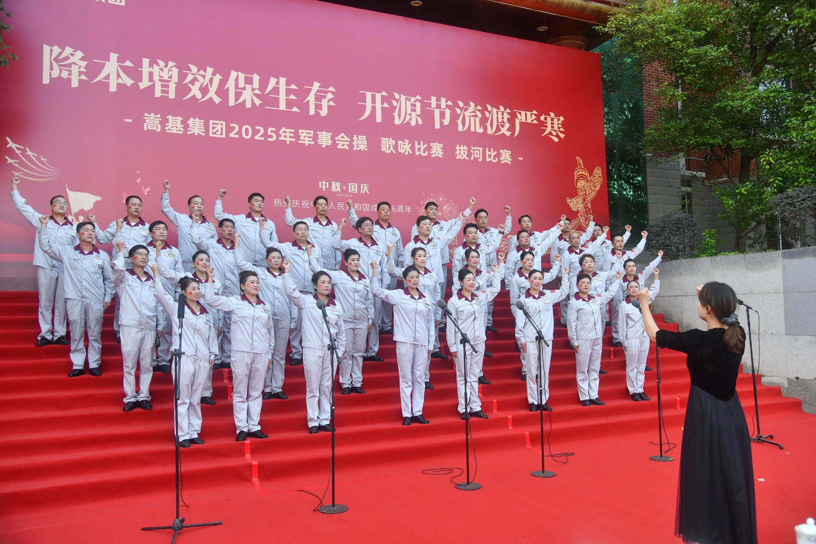 本次活動(dòng)依次進(jìn)行了歌詠比賽、軍事會(huì)操和拔河比賽三項(xiàng)賽事。歌詠比賽中,各代表隊(duì)精神飽滿,《保衛(wèi)黃河》《強(qiáng)軍有我》《愛永在》等經(jīng)典曲目接連唱響,歌聲嘹亮,情感真摯,或氣勢(shì)磅礴,或深情婉轉(zhuǎn),充分表達(dá)了嵩基員工對(duì)祖國(guó)的深厚情感與美好祝?!,F(xiàn)場(chǎng)氣氛熱烈,掌聲此起彼伏。經(jīng)專業(yè)評(píng)委現(xiàn)場(chǎng)打分,嵩基水泥代表隊(duì)榮獲冠軍,中岳電力代表隊(duì)獲得亞軍,嵩基新材代表隊(duì)獲得季軍。